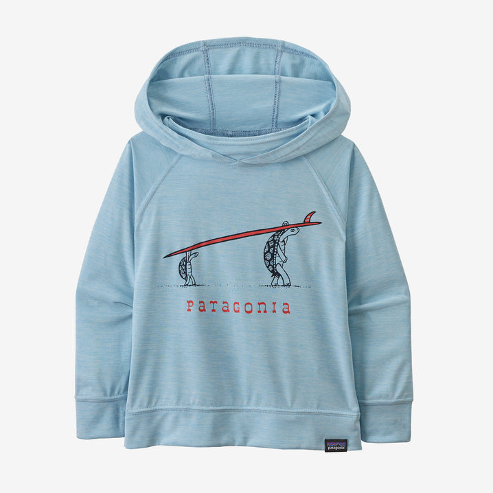 Una polera para bebés con capucha, ligera y cómoda para usar bajo el sol; confeccionada con nuestra respirable tela Capilene® Cool Daily que tiene control durable del olor HeiQ® Fresh y protección solar 50+ UPF. Con certificación Fair Trade™.
